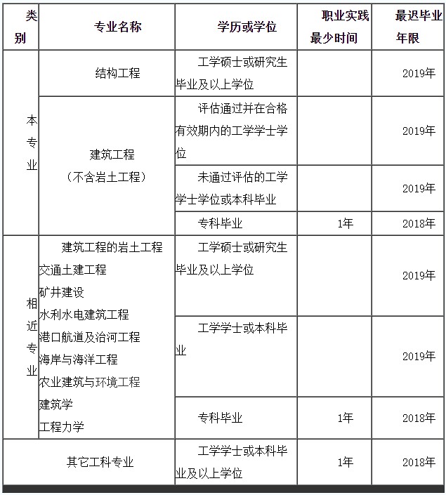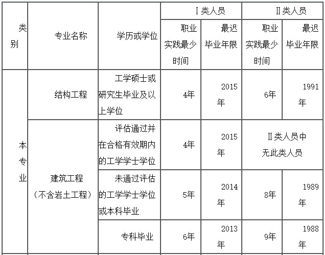 注:表中“Ⅰ类人员”指基础考试已经通过,继续报考专业考试的人员;“Ⅱ类人员”指符合免基础考试条件只参加专业考试的人员,该类人员可一直报考专业考试,直至通过为止。