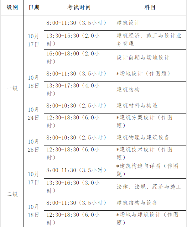 (一)考试时间及科目