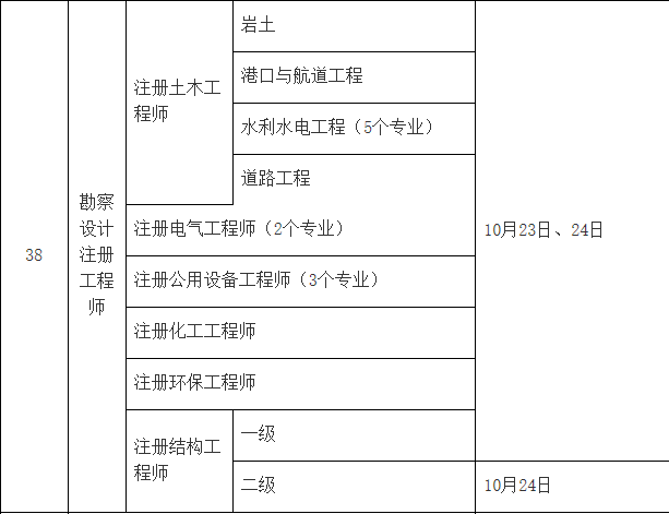 其中勘察设计注册工程师考试时间安排为10月23、24日